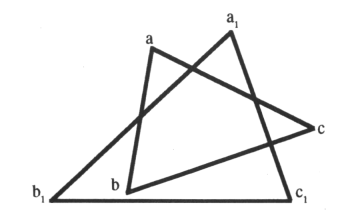 Siempre cabrá la objeción de que no pasa de ser un triángulo acutángulo; no es el triángulo en sí. En efecto, también se puede dibujar el triángulo de otra manera, en rigor, no se «puede», pero seguidamente veremos qué relación existe entre ese poder y no poder. Supongamos que a este triángulo (véase arriba) le permitimos que cada uno de sus lados se mueva en la dirección que quiera, y además a diferentes velocidades, de modo que, en el momento siguiente, adopten, por ejemplo, estas posiciones: