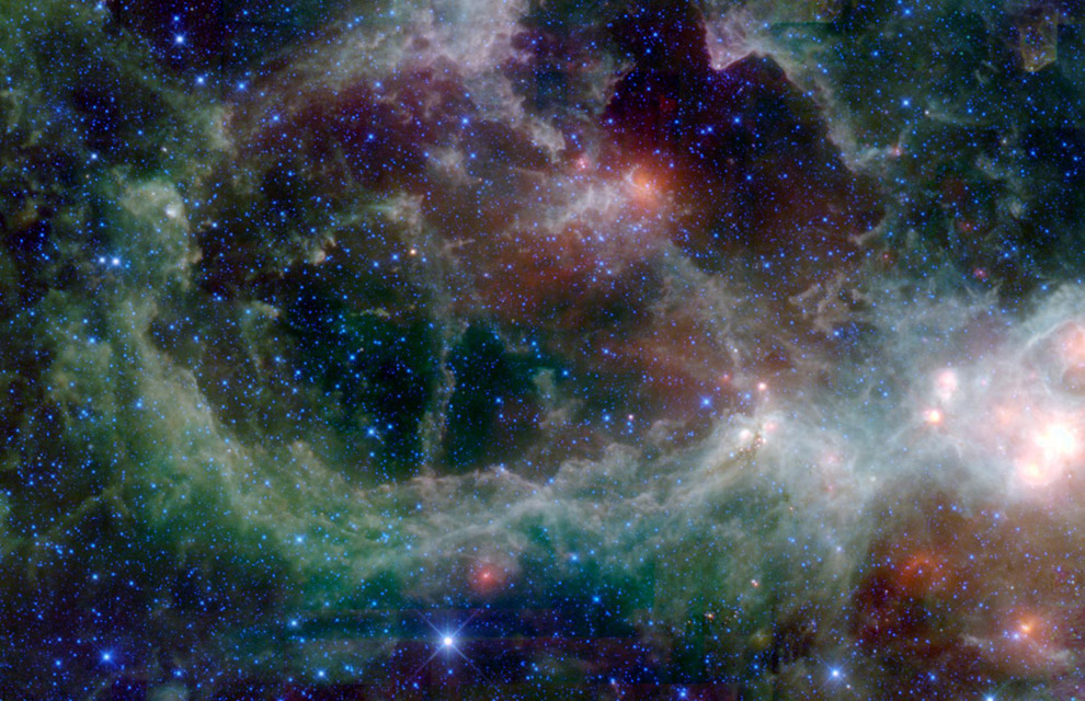Aparte de la concepción de espacio y distancia, también se ha descubierto algo más. Nos inclinamos a pensar que todas esas estrellas y galaxias distantes se mueven más o menos pacíficamente en sus caminos, moviéndose bien juntas. Pero se ha descubierto lo contrario. El gran universo entero está volando a una velocidad tremenda. Las galaxias individuales no han llegado todavía a la velocidad de la luz, pero no están muy lejos de ella. Nos encontramos ante un universo que parece una explosión atómica: sus partículas están simplemente volando a pedazos! No me gustaría desarrollar demasiado este concepto, pero la idea es muy reveladora en un sentido simbólico. En nuestro intento de penetrar en el espacio cósmico, todo lo que hemos logrado es un cosmos que aparentemente se aleja de nosotros. Vemos que el empleo del sentido de la vista por sí solo ha dado lugar a una imagen aterradora del cosmos. Y cuando nos enteramos de la astronomía desde las ondas de radio, se nos dice que esto significa «oír» las estrellas, pero no es cierto. Todavía sólo podemos verlas ya que estas ondas se observan en una pantalla, que es lo que vemos. No hay nada más, todo se basa en el sentido de la vista.