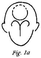 Vamos a ver cómo podemos encontrar la constelación de Aries (♈), primero en la cabeza. ¿En qué parte de la cabeza podemos encontrar el Aries? ¿Dónde está funcionando? Está impreso en la cabeza humana (Fig. 1a), y este es el símbolo que utilizamos para la constelación de Aries. ¿Qué significa este símbolo? Simplemente significa que hay un gran cosmos, aún no diferenciado.