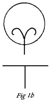 Vemos que ha tenido lugar un cierto desarrollo. El mundo superior majestuoso, maravilloso mundo cósmico, sigue descansando en su perfección. A través del impulso del movimiento se ha desarrollado otra cosa. El símbolo expresa su progreso. Una indicación de la esfera está dada por la adición de algo como cuernos a un círculo. Podemos conectar con el cerebro, pero los cuernos llegan por encima de la cabeza. El círculo más pequeño representa el cerebro (Fig. 2b).