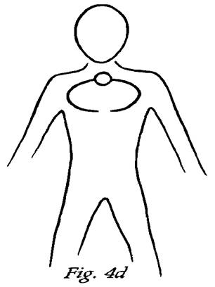 Cuando nos fijamos en la totalidad del ser humano, nos encontramos con las fuerzas de Cáncer en la formación de tórax (fig. 4d). Ha sido algo modificada, pero en cierto sentido encierra el mismo principio, la misma actividad. En el pecho estamos en casa con nosotros mismos, es la casa en la que podemos vivir, donde late nuestro corazón, y también donde nos sentimos aislados, en cierto sentido, del gran hogar del universo.