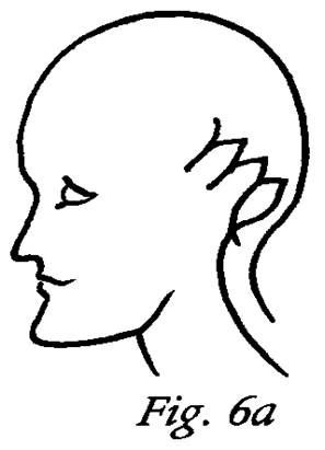 Este es el símbolo que utilizamos para los gemelos (Fig. 3b). Vemos dos mundos separados que se desplazan. Esta es una tendencia que se puede ver en cualquier parte de la cabeza. Un ejemplo es la diferenciación entre derecha e izquierda. Sabemos que el lado derecho de la cara es muy diferente del lado izquierdo. Son gemelos y unidos entre sí, pero cada uno tiene una formación diferente. Entonces tenemos la diferenciación en la vertical y entre la parte delantera y trasera.