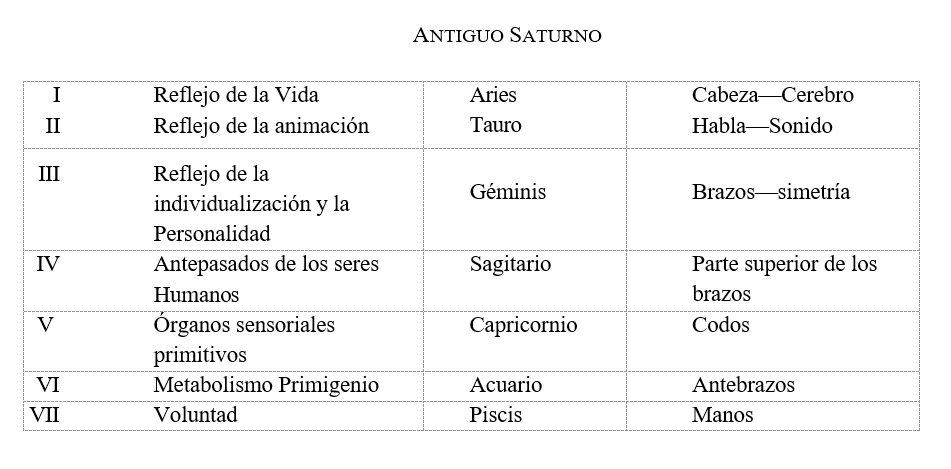 En las Cartas anteriores hemos desarrollado algunas de las doce constelaciones del Zodiaco en relación con los acontecimientos evolutivos del Antiguo Saturno. Ahora finalizaremos esta imagen describiendo el séptimo gran ciclo de esta existencia planetaria de nuestro universo.