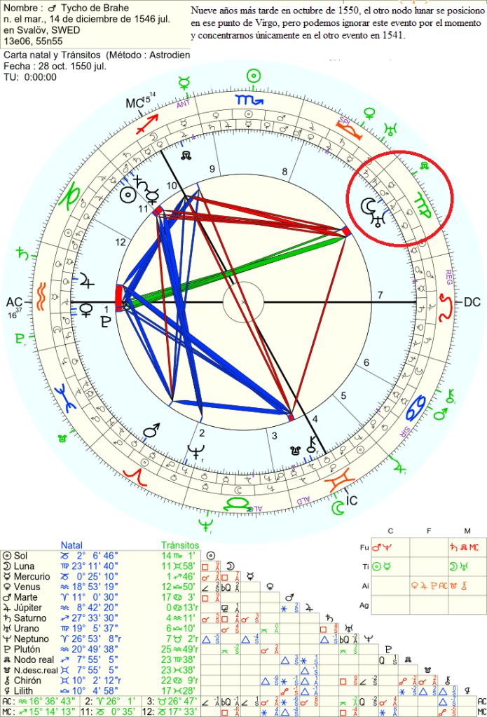 Nueve años más tarde en octubre de 1550, el otro nodo lunar se posiciono en ese punto de Virgo, pero podemos ignorar este evento por el momento y concentrarnos únicamente en el otro evento en 1541.