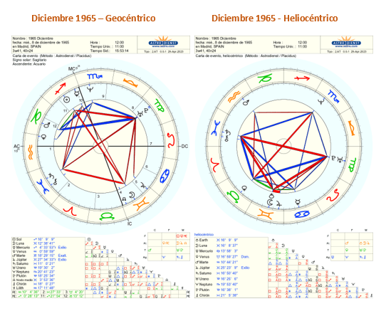 En octubre señalamos que los eventos del «gran patrón» planetario —relacionado con la conjunción de Urano y Plutón— continuará por algún tiempo, pues la última conjunción ocurrirá el 30 de junio de 1966, de acuerdo al cálculo geocéntrico. Así encontramos, por ejemplo, el 8 de diciembre, un trígono (120°) con los aspectos de Marte a Plutón. Por otra parte, el 10 y 11 de diciembre, se llevará a cabo un aspecto de cuadratura (90°) del Sol a la conjunción Plutón-Urano. Por último, el 30 y el 31 de diciembre, tendremos la cuadratura de Mercurio a Plutón y Urano, todo de acuerdo a la perspectiva geocéntrica (las posiciones de los planetas como tal y como se ven desde el punto de vista de la Tierra).