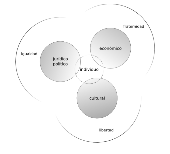 En la vida libre espiritual-cultural, todos están activos de acuerdo con sus habilidades especiales. En lo económico, cada persona ocupa el lugar que le corresponde como consecuencia de su conexión con el resto de la red asociativa. En el estado político-vida de los derechos, cada uno adquiere lo suyo como ser humano. Se basa en su simple valor humano. Esto no tiene nada que ver con sus habilidades en la vida espiritual libre y es independiente, también, del valor que el sistema económico asociativo pueda asignar a los bienes que produce.