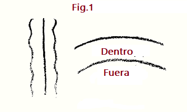 Entiéndame bien, mis queridos amigos. Queremos tener una idea, aunque sea sólo pictórica para empezar, de cómo los tres miembros del sistema humano se relacionan entre sí. A primera vista, por supuesto, será difícil. En los órganos que se encuentran en la cabeza humana, será difícil reconocer claramente en ellos la metamorfosis de aquellos órganos que son fundamentales para el sistema metabólico y linfático. Pero si nos adentramos lo suficiente en la morfología del hombre, podremos encontrar nuestro camino. Solo tenemos que pensar más a fondo en las líneas ya indicadas. Es decir, la esencia de la relación mutua del hueso largo con el hueso del cráneo y viceversa es un giro completo de adentro hacia afuera. La superficie interna del hueso se convierte en la vuelta hacia afuera. Es el principio por el cual se gira un guante de adentro hacia afuera, siempre que el giro de adentro hacia afuera implique un cambio simultáneo en las relaciones inherentes de las fuerzas internas. Si volviera un hueso tubular o un hueso largo de adentro hacia afuera como un simple guante, volvería a tener la forma de un hueso tubular, no hace falta decirlo. Pero no será así si partimos, como debemos hacer, de la configuración inherente del hueso. Como describí antes, en su configuración inherente, el hueso largo está orientado hacia adentro, hacia la cualidad radial que lo atraviesa. Por tanto, está obligado a someter su estructura material y su disposición al principio radial. Cuando lo haya «volteado», de modo que el lado interior se abra hacia fuera, en su configuración ya no seguirá el principio radial sino el esferoidal. El «lado interno», ahora vuelto hacia afuera hacia la Esfera, recibirá esta forma (Fig. 1).
