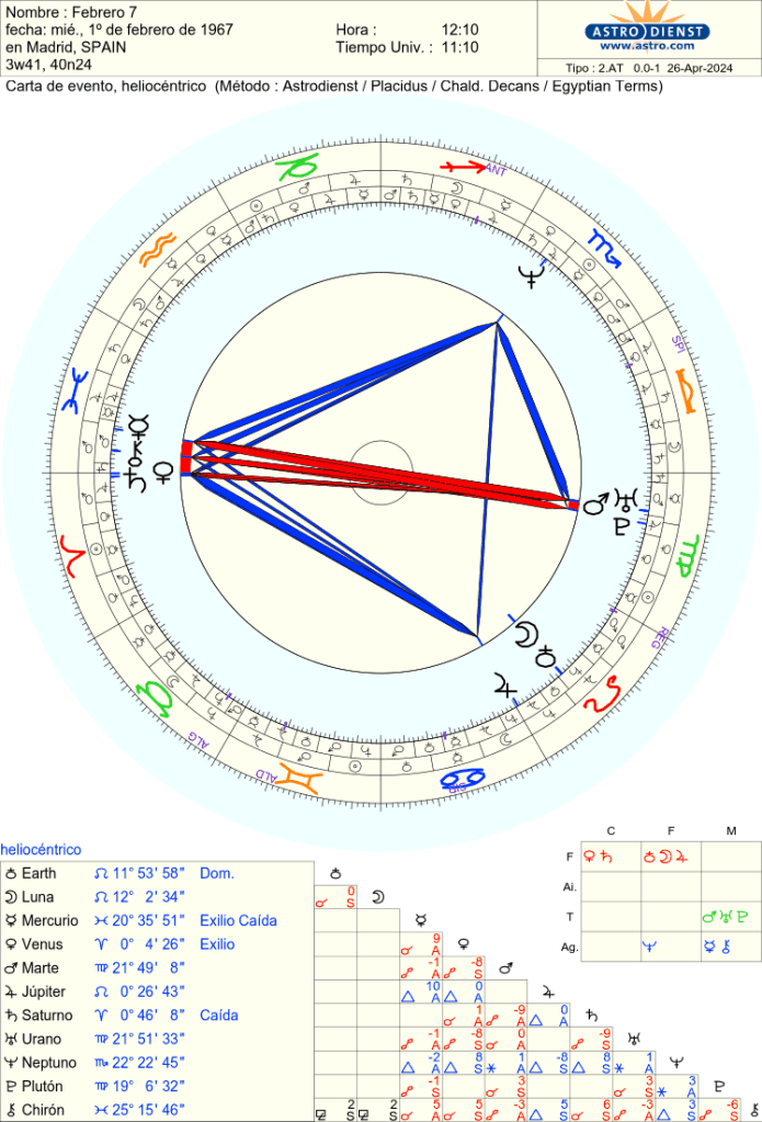 En la edición de enero, nos referimos a una serie de acontecimientos alrededor del 25 al 26 de enero: Marte y Venus se oponen entre sí desde el punto de vista heliocéntrico. Notamos que al mismo tiempo estaban en la línea apsidal de Urano; y el 26 de enero, Marte estaba en conjunción eclíptica con Plutón. (Este evento posterior nos llevó entonces a la investigación del asterograma de encarnación de Copérnico).