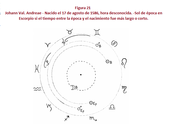 Además, contó con la ayuda de su particular afluencia de Marte durante el desarrollo prenatal. Este planeta comenzó en la constelación de Sagitario y se desplazó hasta Géminis. Al elevar este impacto al reino del control consciente (el camino de Marte está sumergido, por así decirlo, en la imagen del embrión), desarrolló un sentido de responsabilidad por el progreso espiritual de la humanidad. En sus últimos años, fue ministro de la Iglesia Protestante de Suabia. Asumió esta tarea después de que fuera evidente que los esfuerzos del movimiento rosacruz habían fracasado debido a la resistencia, e incluso al antagonismo activo, de los poderes políticos dominantes de su época. Incluso se desvinculó de los escritos de su juventud.
