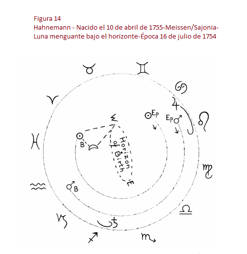 Vemos la disposición hacia este tipo de cosmología en el impacto de Marte y Júpiter en Leo en el momento de la época (ver Fig. 14). Leo está, en conjunto, profundamente asociado a la orientación cósmica cuando uno entra en contacto con estas fuerzas a través de su organización. En el caso de Hahnemann, esto se amalgamó favorablemente con las fuerzas de un Sol de Cáncer.