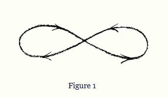 Esto es esencial: deben imaginar que el plano en el que estoy dibujando la lemniscata (Fig. 1) gira alrededor del eje de la lemniscata, es decir, sobre la línea que une los dos focos —llámenlo como quieran. Por tanto, debería tener que dibujar la Lemniscata en el espacio. Esta (Fig. 1) es la proyección de la misma. Tal es el dibujo de la Lemniscata que deben tener en cuenta con respecto a todo lo que he dicho: —por ejemplo, cuando se rastrea el sistema óseo o el sistema nervioso en el hombre. Incluso la circulación sanguínea se puede rastrear de esta manera. Deben imaginarlo todo, no en un avión sino en el espacio. La figura ocho —la Lemniscata— por lo tanto, es legítima, pero como dije antes, realmente se trata de figuras geométricas de rotación. Esto también subyace a lo que acabo de decir. Las formas de nuestra organización interna, en el sistema nervioso y sentidos y en el sistema metabólico y de las extremidades, respectivamente, se relacionan mutuamente según el principio de una lemniscata de rotación.