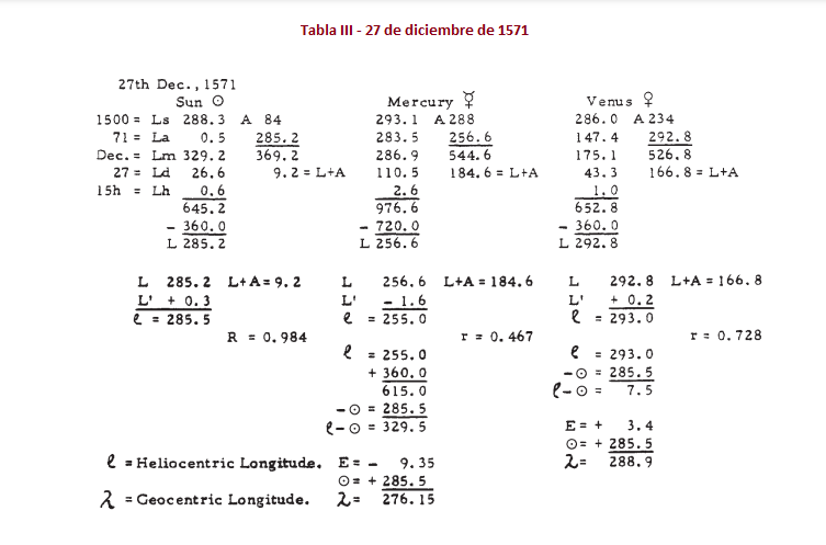 En la siguiente página aparece la Tabla III correspondiente al 27 de diciembre de 1571.