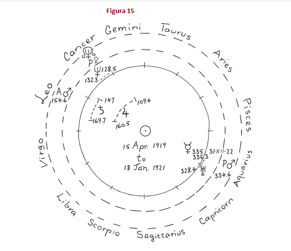 Finalmente, a finales de la segunda y principios de la tercera década del presente siglo, se produjeron varios acontecimientos significativos en los cielos, a los que Rudolf Steiner respondió de forma muy constructiva. En primer lugar, en diciembre de 1919 Saturno pasó por la línea de afelio de Marte. Luego, a finales de octubre de 1920, Júpiter (154°27′) se encontraba en oposición a Urano (334°27′). Esto estaba a sólo unos minutos del arco de la línea de perihelio-afelio de Marte (334°35′, 154°35′). En estos años, la ciencia espiritual, o antroposofía, ha entrado en la luz de la civilización general de la época actual, haciendo importantes contribuciones y sugerencias para encontrar soluciones constructivas a los graves problemas a los que se enfrenta la humanidad y que la amenazan aún más en la actualidad.