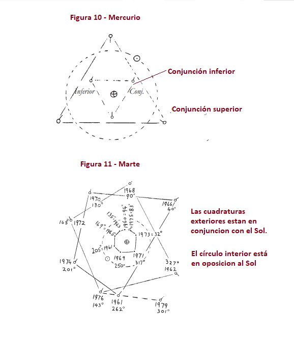 Los compromisos de los nodos de Mercurio con Venus son muy interesantes e instructivos. Por ejemplo, en el momento del nacimiento de Copérnico (19 de febrero de 1473) y de Tycho Brahe (14 de diciembre de 1546), Venus estaba en el nodo ascendente de Mercurio (unos 42° entonces). De hecho, durante esos enfrentamientos entre Kepler y Tycho Brahe, se encontraban, realmente, «Copérnico» en la persona de Kepler como promotor del sistema copernicano y Tycho Brahe frente a él. Sobre el fondo de la «biografía» de los nodos de Mercurio, que mencionamos anteriormente, podríamos incluso verlo como una batalla asociada, en un sentido espiritual, a la interconexión entre el antiguo Egipto y la edad Moderna. Asimismo, también los pasos de los otros planetas por los elementos de las esferas pueden ser explorados en relación con las «biografías» de estos últimos. Incluso se puede visualizar un momento en el futuro en el que estos hechos puedan ser utilizados en una especie de psicoterapia espiritual.
