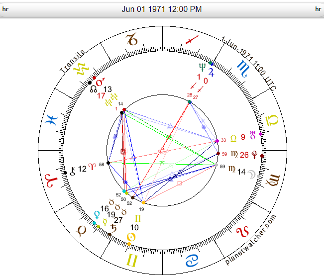 Júpiter, que al nacer se encuentra con Venus y Mercurio, comenzó en la época cercana a la línea nodal descendente de Marte. Solo unos días después, el 10 de mayo, Júpiter se movió realmente a través de esta línea en Libra sideral. Para evaluar esto, ahora podemos buscar similitudes históricas. Cuando murieron las siguientes personalidades históricamente conocidas, Júpiter estaba en una posición similar: