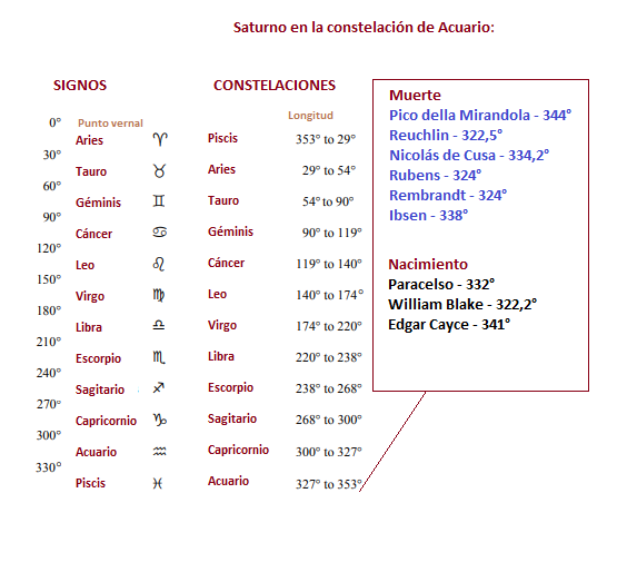 Pico della Mirandola (fallecido el 17 de noviembre de 1494, Saturno en 344°) y Reuchlin (fallecido el 30 de junio de 1522, Saturno en 322,5°). Su afinidad con Acuario sale a la luz en su asociación con la Cábala, el gran complejo del esoterismo hebreo. En particular, las enseñanzas de la Cábala sobre la Emanación de la Divinidad y los Seres del mundo espiritual, como fundamento de la creación y evolución del mundo, son típicas de Acuario. Por lo tanto, es una manifestación de las propiedades antiguas y sagradas de esta constelación. Esta es también la razón por la que la Cábala es casi un libro sellado para la humanidad moderna, excepto para unos pocos seres humanos. A menos que nuestra humanidad presente y futura haga esfuerzos esotéricos y meditativos decididos y conscientes, las puertas a los misterios del cosmos espiritual, en relación con el mundo terrenal, permanecerán cerradas, y nos veremos privados de las herramientas de cognición que realmente necesitamos. para poner en orden nuestra casa terrenal.
