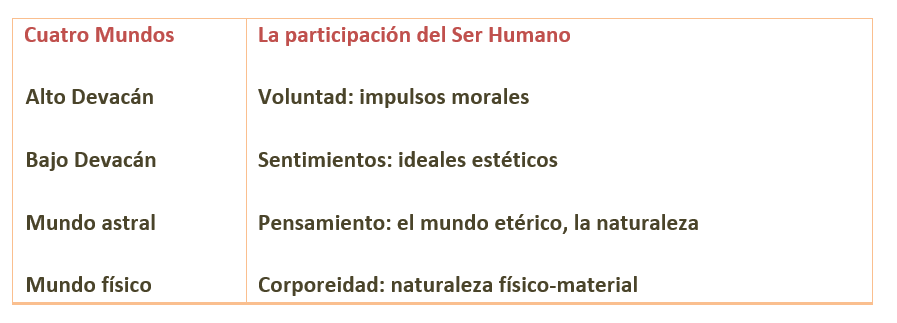El hombre tiene cuatro relaciones con cuatro mundos. Pero esto no significa nada más que él tiene una relación con los Seres de estos mundos. Desde este punto de vista es interesante reflexionar sobre la evolución del hombre, mirar hacia el pasado, el presente y el futuro inmediato.