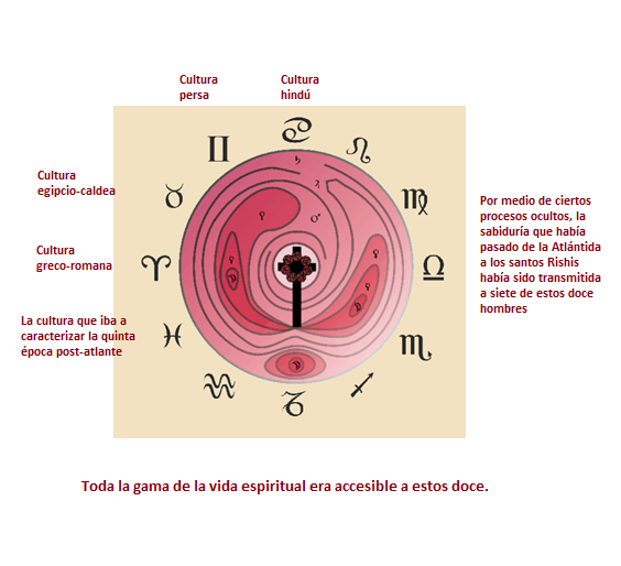 Desde el siglo XIII, el movimiento relacionado con el nombre de Christian Rosenkreutz ha sido una parte integral de la vida espiritual de la humanidad. Fueron necesarias medidas espirituales de un tipo muy definido en el siglo XIII para permitir que la influencia relacionada con este nombre llegara a ser parte de la vida espiritual de la era moderna. En un momento en que el mundo espiritual estaba completamente aislado de la visión humana, se reunió un consejo de doce sabios. Todo el conocimiento espiritual que existia entonces, del mundo y sus secretos, fue recogido de sus diferentes esferas separadas en este consejo. Por medio de ciertos procesos ocultos, la sabiduría que había pasado de la Atlántida a los santos Rishis había sido transmitida a siete de estos doce hombres. En los otros cuatro vivía la sabiduría de los misterios sagrados de las épocas hindú, persa, egipcia y grecorromana respectivamente. Y lo que existía en aquellos días del tipo de cultura que iba a caracterizar la quinta época post-atlante constituía la sabiduría del duodécimo. Toda la gama de la vida espiritual era accesible a estos doce.