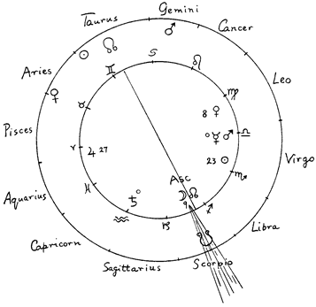 Esta tercera constelación parece no encajar, pero si profundizamos lo suficiente, encontraremos una conexión muy notable. Aquí, una vez más, Rudolf Steiner nos ayuda. Nietzsche debería haber desarrollado una filosofía equivalente al Voluntarismo en el Matematismo; habría sido maravilloso. Imaginen la visión del mundo de Así habló Zaratustra, traducida a una perspectiva matemática, un universo impulsado por la voluntad y, a la vez, con belleza y precisión matemáticas. Nietzsche, como se desprende de su carácter, no tenía predisposición para el matematismo. Su evolución aún debía pasar por el empirismo (Sol) y el voluntarismo (Marte), y como esta limitación interna le impidió desarrollar una filosofía matemática, en lugar de transitar del Sol en Tauro (empirismo en el racionalismo) a Marte en Géminis (voluntarismo en el matematismo), se lanzó a la oposición cósmica de su postura anterior, a la constelación de Marte en Escorpio (voluntarismo en el dinamismo), en oposición al Sol en Tauro.