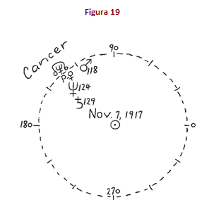 La siguiente gran revolución tuvo lugar en Rusia el 7 de noviembre de 1917. Los bolcheviques, bajo el liderazgo de Lenin, consiguieron eliminar el gobierno de Kerenski, que anteriormente había suplantado al régimen zarista. La configuración parece mucho más dramática que la de 1789. Neptuno y Saturno estaban cerca del nodo ascendente de Neptuno y del perihelio de Venus, y Marte se acercaba muy rápido a esas líneas.
