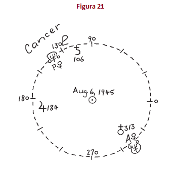 Por último, hemos incluido la carta del 6 de agosto de 1945. No se trata, en sentido estricto, de una carta que se refiera a una crisis social; sin embargo, la consideramos una consecuencia de la anterior. Uno de los resultados de los acontecimientos de 1933 fue la Segunda Guerra Mundial. Aunque se desarrolló con gran ferocidad, se prolongó interminablemente y adquirió dimensiones mundiales imprevisibles. Finalmente, el gobierno estadounidense decidió emplear la bomba atómica para forzar el fin de la guerra en Asia. Así ocurrió Hiroshima. En aquel momento Plutón se situó sobre el nodo ascendente de Neptuno y el perihelio de Venus, con la Tierra enfrente. El planeta Plutón, que puede asociarse tanto a una gran espiritualización como a la máxima destrucción, acompañó este ominoso momento. Una vez más, las contrafuerzas inventan otro «látigo» con el que intentan alejar a la humanidad de las soluciones «amorosas de Venus» a los problemas sociales de toda la humanidad. El látigo del miedo se utiliza, como tantas veces, en estos contextos. Se supone que el miedo al Holocausto Atómico mantendrá al mundo moderno en los grilletes de la obediencia a las viejas reglas marcianas del juego social.