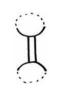 Quizás haya otra manera de ver estos símbolos en el sentido de una evolución de la esfera o de un entorno. También podemos imaginar este pequeño círculo con las dos curvas que salen de él y podrías continuar esas curvas para formar otro círculo encima del círculo pequeño. Éste es un cuadro para la etapa posterior a la iniciación de Aries, después del comienzo o de la irrupción en la unidad de la esfera única. Aquí hay un comienzo de separación, y la esfera más pequeña, como una célula separada, comienza a formarse fuera de la esfera grande que está encima de ella, pero unida. Entonces, todavía tienes una especie de conexión con la gran esfera de unidad, o podrías decir con el mundo divino, la unidad divina, pero un comienzo de separación en la pequeña esfera.