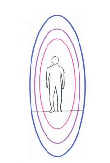 Willi Sucher ha relacionado estas tres esferas, en las que profundizaremos, con estos planetas exteriores. Esta primera esfera alrededor del ser humano está conectada con la esfera de Urano, la siguiente esfera con Neptuno y la esfera exterior con Plutón. Entran en el «aura» que rodea al ser humano, un aura de conciencia. Si comenzamos con esto como una idea, como una imagen, podemos profundizar en cómo se aplica esto al aspecto trinitario o triple aspecto de estos tres planetas.
