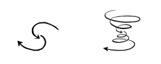 El símbolo de cáncer también se puede tomar como una imagen de dos espirales pasando una en la otra, —una con un movimiento envolvente y la otra con un movimiento más evolutivo, lo que significa el pasaje perpetuo y viviente del pasado hacia el futuro.
