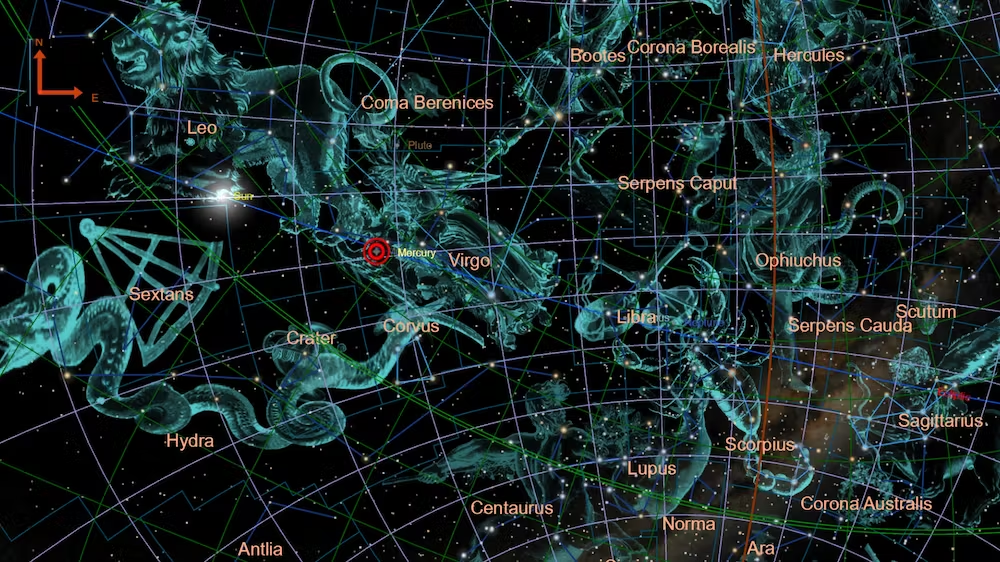 Durante 1957, el planeta Saturno entrará en la constelación de Escorpio. Estará allí hasta finales de 1958, ya que como sabemos, Saturno se mueve muy lentamente. Júpiter ha entrado en la constelación de Virgo y permanecerá allí por mucho tiempo, hasta octubre de 1958, debido a que la constelación de Virgo es la más extensa del Zodíaco. En realidad, es la más grande de las 12 constelaciones del zodiaco. Luego tenemos al planeta Marte, que todavía está en la constelación de Piscis, y que en el curso del año se moverá hasta Escorpio; posiblemente en enero de 1958, se unirá a Saturno en una gran conjunción de Escorpión.