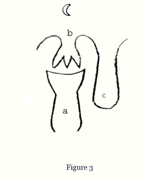 La comedia de Moliere es comedia per se, comedia en esencia. No se puede entender interiormente, espiritualmente, a menos que uno sea consciente de que el Alma Racional es dominante en ella, de una manera en que esta singularidad nunca podría repetirse. Porque todo lo que surge en la evolución de la humanidad emerge en un punto característico una vez y solo una vez. Así como en una vida, la edad de 18 o 25 años nunca se alcanza dos veces, es igualmente imposible para la humanidad producir dos veces más de lo que alcanzó el grado de acabado que tuvo en la personalidad de Molière. Todo esto está indicado y se puede sentir en este diseño [Figura 4].