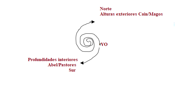 La corriente del Norte también es conocida, como hemos visto anteriormente, como la corriente de Caín. El nombre Caín (o Kayn) en hebreo significa algo producido – o una lanza. Podemos ver con este nombre la calidad de esta corriente, que busca forjar en el mundo como una lanza en la materia, para producir algo que pueda ser ofrecido como sacrificio al mundo espiritual. En otras palabras, emerger del cuerpo físico de la materia, superando el velo de los sentidos externos (Percepción).