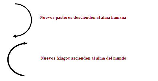 Estas fuerzas de la visión exterior o «memoria de experiencias pasadas» (Magos) y la «comprensión del karma» del alma interior (Pastores) deben transformarse en las fuerzas de la Imaginación y la Inspiración en el alma a través de este intercambio. En nuestros tiempos, con el comienzo del reinado de Micael en nuestra época, él se alía con esta tarea de unificación y ha inspirado a dos iniciados humanos, representantes de ambas corrientes, trabajando en pro de esta unificación.
