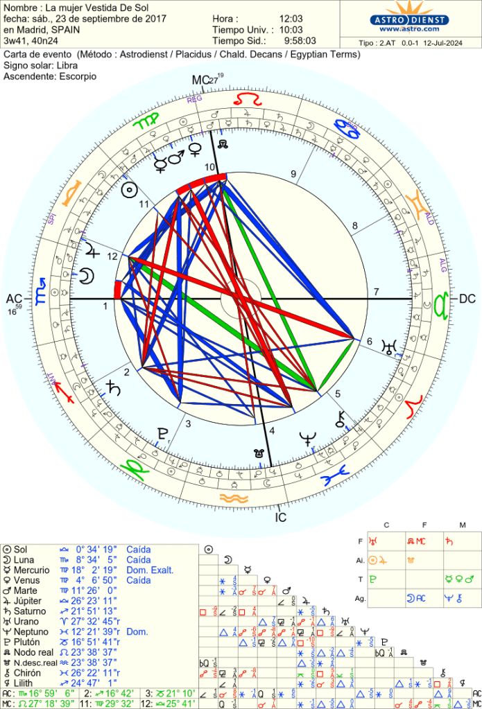 Esa noche, el sol entró en la constelación zodiacal de Virgo: “una mujer vestida del sol”. La luna estaba a los pies de Virgo: “con la luna bajo sus pies”. Las “nueve” estrellas de la constelación zodiacal de Leo, más tres planetas (Mercurio, Venus y Marte), coronaron la cabeza de Virgo: “sobre su cabeza una corona de 12 estrellas”.