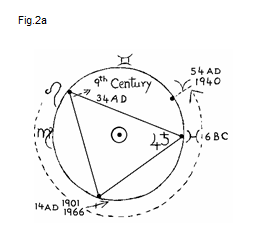 En otra ocasión trataremos el tercer vértice de este triángulo en Sagitario, alrededor del año 14-15 DC., que se refiere al evento de Jesús en el Templo, a los 12 años de edad. Pero todo lo que hemos dado hoy presenta el contexto del siglo en el que vivimos.