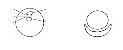 Sabemos que durante nuestro nacimiento se desarrollan tres capas (las líneas de la derecha indican el amión en la parte superior y el saco vitelino en la inferior). En el medio, y señalado por las líneas de la izquierda, se forma el ectodermo, que es una especie de envoltura exterior y ayuda a formar la piel, los órganos sensoriales y el sistema nervioso. Sabemos también que los ojos surgen a través de la transformación de la piel. En segundo lugar está el endodermo, que aporta los elementos que forman el sistema metabólico, incluido el tracto digestivo, el sistema respiratorio, etc. En tercer lugar está el mesodermo, que es la capa entre estos dos que conecta el tejido y el cartílago y el sistema óseo. Por supuesto, hemos simplificado todo esto para nuestro propósito. Estos tres elementos también están relacionados con los tres aspectos del sistema solar: el endodermo con los llamados planetas inferiores de Mercurio, Venus y la Luna; el mesodermo con el Sol; y el ectodermo con todo el mundo planetario hasta Saturno.