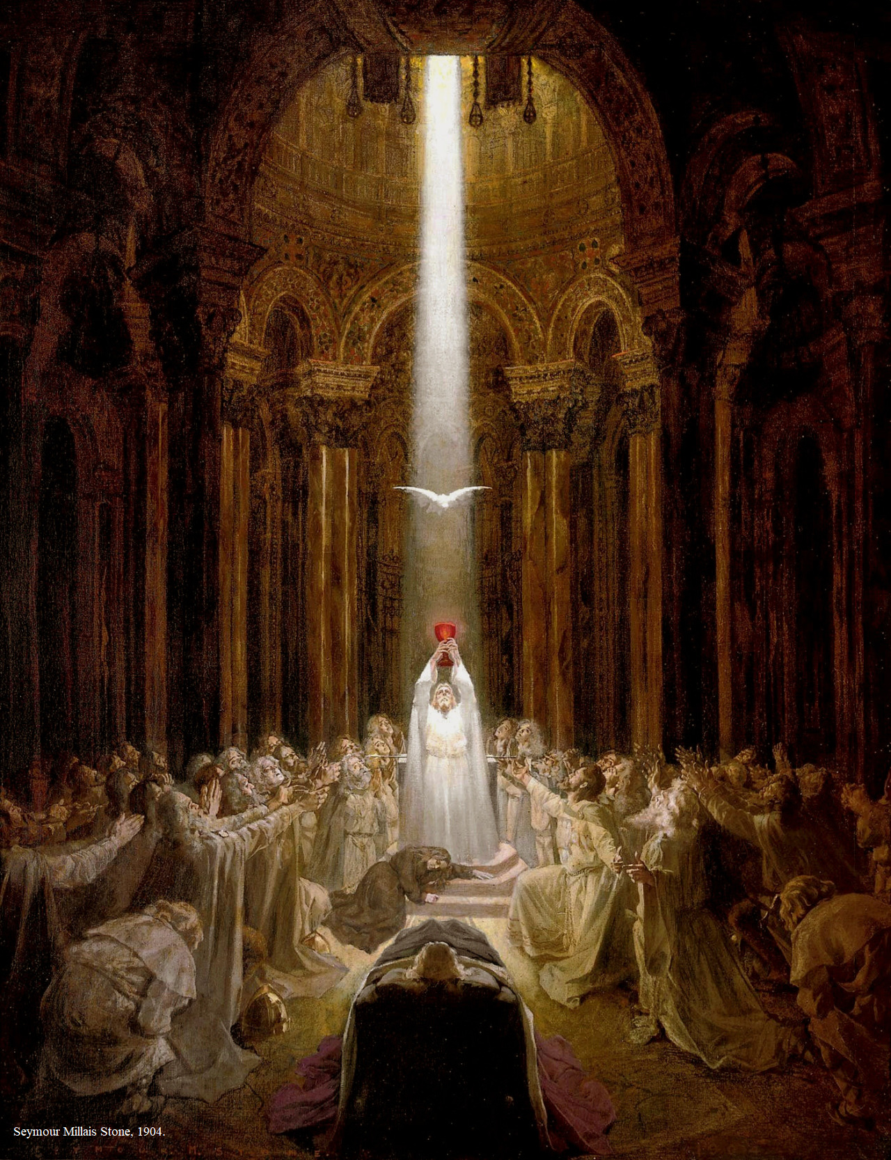 Y yo creo que el Misterio de este Ser puro que planea sobre nuestras cabezas y que recibe en él la sangre sagrada, es decir el Hijo Divino, -el misterio del Grial- es una forma de representación de esta interpenetración de lo eterno en lo temporal.