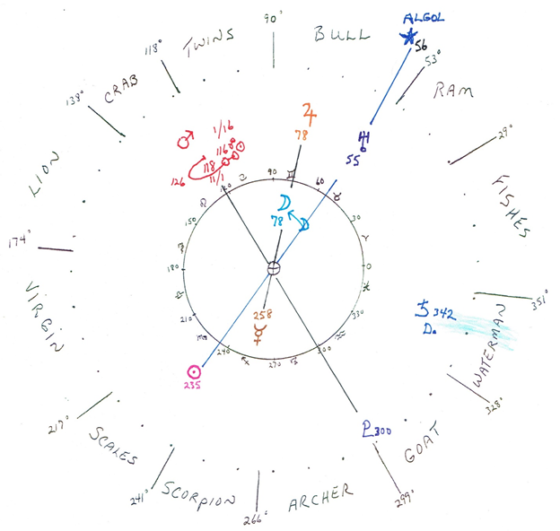 ¿Cómo podemos entender entonces que Urano esté en conjunción con esta estrella Algol, donde ha estado flotando durante estos meses desde junio, y que ahora esté opuesto al Sol en este día, 17 de noviembre? El Sol está en las estrellas de Libra, que se podría describir como el contrapunto moderno de Perseo, porque Libra es la estrella de Micael y la nueva batalla micaélica por la redención de la inteligencia cósmica, o la incorporación de la inteligencia alada a la humanidad. Incluso se puede ver en la historia del héroe griego Perseo, luchando contra Cetus para rescatar a Andrómeda, una especie de espejo de esa conciencia del tiempo en la imagen de Micael luchando contra el Dragón (Escorpio) para salvar a Sofía (Virgo) de ser devorada. Tal vez recuerden que cada agosto tenemos la lluvia de meteoros de Perseo como heraldo del comienzo de la temporada de Michael. Así que ahora el Sol se encuentra en Libra mirando hacia Urano en conjunción con Algol, la estrella demoníaca y malvada. Urano es la esfera que quiere desarrollarse como el estado superior de conciencia, descrito por Rudolf Steiner como Conciencia Imaginativa. Es el primer paso en el camino hacia una nueva conciencia, que se desarrolla a medida que transformamos nuestra naturaleza astral inferior (el Cetus en cada uno de nosotros). Urano también es la esfera que representa el desarrollo de lo que Rudolf Steiner llama el Yo Espiritual. (Ver en mi libro, el capítulo sobre los Planetas Exteriores.)