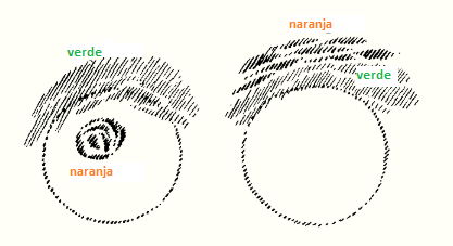 Todo esto pertenece a una correcta concepción del pensamiento pascual. Pero, ¿qué sería este pensamiento pascual si no pudiera volverse vivo? En la antigüedad, era posible conectar la conciencia sensible correcta con el pensamiento del solsticio de invierno solo porque, por otro lado, tenían el pensamiento de San Juan. Esquematizado: si uno tenía lo terrenal con su naturaleza invernal profundamente oculta (naranja), entonces su contraparte era lo que en verano se encontraba en la periferia supraterrenal (naranja). Ambos debían alcanzarse solo a través de la iniciación, sin embargo, estaban conectados por lo que había en la atmósfera que rodeaba la Tierra, en la periferia de la Tierra (verde). La Navidad llama a San Juan. San Juan llama a la Navidad. El hombre se endurecería bajo la influencia de los poderes ahrimánicos si no pudiera exponerse a los poderes luciféricos que lo relajan, quienes nuevamente dan alas al pensamiento, de modo que no necesita permanecer rígido sino que puede descongelarse nuevamente bajo la influencia de la luz.