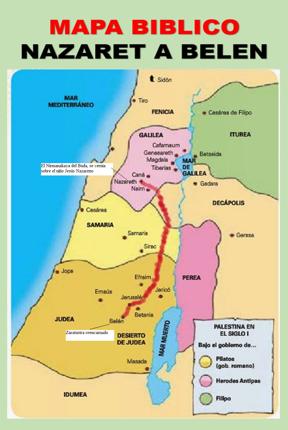 El Evangelio de Lucas, por otro lado, nos permite conocer los acontecimientos significativos que hicieron posible que este ser trascendental de Cristo se manifestara en la personalidad de Jesús de Nazaret, mostrando la confluencia del zoroastrismo y el budismo. Hemos visto cómo estas dos poderosas corrientes espirituales se unen precisamente en Jesús de Nazaret. Él se nos presentó por última vez como una personalidad humana, que nació como un niño con dones internos muy especiales, pero no inicialmente con aquellos dones que lo habrían llevado, en particular, a la comprensión del mundo físico externo y presente. Sobre esta personalidad, que se nos apareció como un niño en el Jesús Natánico, el verdadero Jesús de Nazaret, vemos irradiar lo que llamamos el Nirmanakaya de Buda, lo que vemos como el aura de este niño. Es la forma que Buda adoptó tras su última encarnación, en la que se convirtió en Buda. Hemos podido destacar que lo que llamamos nuestra enseñanza esotérica occidental justifica plenamente lo contenido en las escrituras orientales: que la individualidad antes de la encarnación del Buda, en la que apareció en el siglo VI antes de Cristo, era un Bodhisattva.