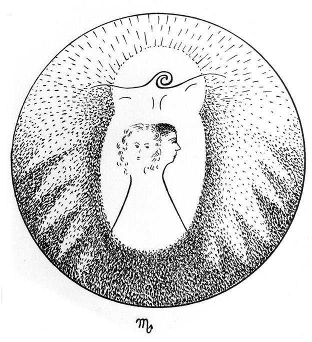 Así comenzó el largo descenso a la materia y la experiencia de la muerte y la separación, y el Águila se convirtió en el Escorpión con su aguijón de muerte.