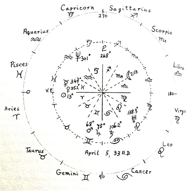 La época de Cristo, y en particular la mañana del Domingo de Pascua, el 5 de abril del año 33 d. C., presenta una situación única en los cielos. En aquellos días, existía una armonía en todo el firmamento, hasta la Tierra, que no existía antes y que no volverá al universo hasta dentro de unos 26.000 años. Existía armonía entre los tres Zodíacos.