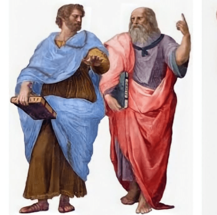 La relación entre las ideas y las cosas creadas es completamente diferente para Aristóteles. De acuerdo con su terminología, es una relación entre forma y sustancia, donde para la palabra «forma» utiliza el término griego «eidos» o «logos». Esta estaba inseparablemente unida al objeto que es creado. Por lo tanto, para Aristóteles, el mundo físico de los sentidos que lo rodeaba representaba una realidad.
