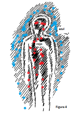 Si consideramos la forma humana, podemos decir: En tiempos muy antiguos, el hombre se sentía dentro de esta forma de tal manera que solo sentía las características raciales externas conectadas con la sangre, pero no percibía hasta la piel misma (rojo en el dibujo); no notaba lo que formaba su contorno.