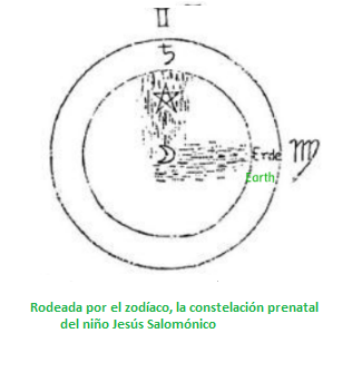 Una vez más, incluso más que en el otro nacimiento de Jesús, todo se orienta hacia el signo de Virgo la Virgen. El alma proviene de esta dirección, y la Luna también debe buscarse en esta cuarta dirección desde la Tierra. La Luna en el cielo, de pie ante la Virgen, el ángel Gabriel anunciando en la Tierra el nacimiento de la Virgen María: una escritura verdaderamente celestial de rara claridad. No colocamos la Luna en el centro de esta imagen, sino la Tierra, porque, de hecho, todo lo que es correcto en este momento se concentra en la Tierra.