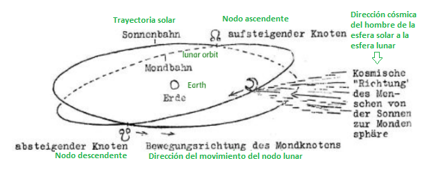 Necesitamos estudiar la naturaleza del nodo lunar en detalle para que quede completamente claro lo que aquí se quiere decir. El tema fue tratado extensamente en las Circulares anteriores de la Sección Matemático-Astronómica (1927-30). Astronomía y Antroposofía de Elisabeth Vreede (I. Jahrg., n.º 9, 12). Por lo tanto, aquí solo se resume lo esencial para comprender lo que sigue.