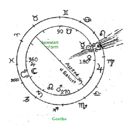 En el círculo interior del dibujo adjunto tenemos la conocida constelación natal de Goethe, sobre la cual él mismo habla tan bellamente en «Poesía y verdad».