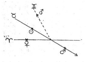 Como ya se ha mencionado, la presente consideración se dedica principalmente a la representación de la constelación del «pensamiento cósmico» o, también se podría decir, la «constelación de la cosmovisión». La «constelación prenatal» tiene que ver con ascender un paso más allá de lo físico hacia el elemento lunar-etérico. La constelación del «pensamiento cósmico» alcanza incluso más «hacia afuera». En realidad, se origina en la esfera solar. Sin embargo, no puede considerarse como un acontecimiento claramente prenatal, dado que esta constelación pueda estar presente mucho antes del nacimiento. También puede verse en el cielo después del nacimiento, y esto es precisamente lo que ilumina el hecho de que uno es arrojado fuera de los conceptos del tiempo a los que estamos acostumbrados en la Tierra, de que las relaciones temporales se invierten, por así decirlo. Así, en el momento del nacimiento tenemos el horóscopo propiamente dicho, la «natividad»; luego, como el siguiente nivel superior, la «constelación prenatal» o, como se esbozó brevemente, una constelación lunar; y como un nivel más, la constelación del «pensamiento cósmico» o «constelación solar». Lo que aquí se presenta de manera esquemática se explicará y aclarará con más detalle más adelante.