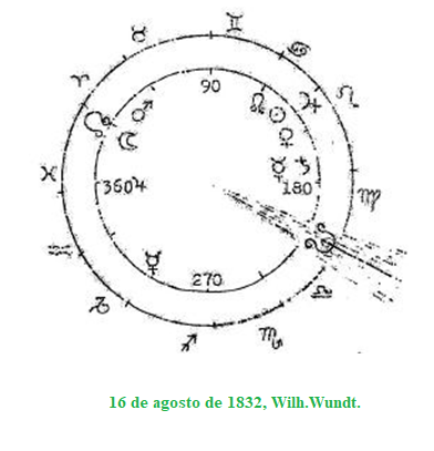 Rudolf Steiner nombra a Wilhelm Wundt como otra personalidad y destaca su cosmovisión de logismo en sensorialismo y empirismo en matematismo, o Júpiter en Leo/Sol en Géminis. Consideremos primero aquí también la constelación exterior: