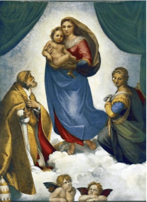 De manera maravillosa, encontramos estas verdades expresadas pictóricamente en la Madonna Sixtina de Rafael.